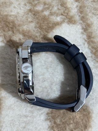 Reloj de pulsera con esfera azul y detalles plateados.maquinaria automatica japinesa.cristal zafiro,bisel ceramico con un color negro piano espectacular.No vas encontrar otro similar por este precio.tiene toda su documentacion. - Bisel giratorio. - Correa de metal. - Cierre de seguridad.