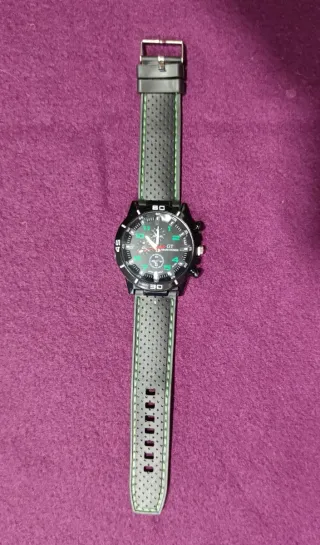 Reloj con correa de silicona. - Correa ajustable con múltiples orificios. - Esfera redonda con detalles en la esfera.