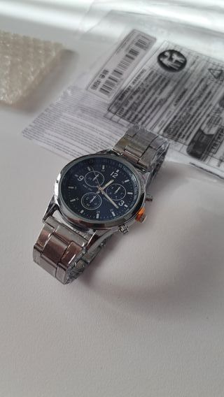 Reloj de pulsera con diseño clásico y elegante de buena calidad sin estrenar. Color gris plateado con interior negro, lo aclaro que se ve regular en las imágenes. Incluye un código Qr en el envasado para acceder a las instrucciones de su puesta en marcha y funcionamiento en el idioma que desee. Básico para gente básica, resistente y ligero, y sobre todo, cómodo y elegante. Lo doy envasado en plástico de burbujas para que no se dañe.