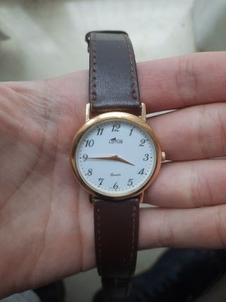Elegante reloj de pulsera de la marca Lotus, con un diseño sofisticado. - Caja y brazalete en tono dorado. - Esfera blanca con detalles. - Cierre de seguridad.