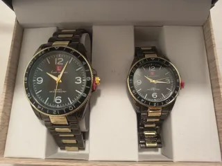 Elegante reloj de cuarzo con modelo para hombre y otro para mujer de la marca Binbond. Con un diseño moderno y sofisticado. - Correa de acero inoxidable con cierre de seguridad. - Cristal mineral endurecido resistente a los arañazos. - Resistente al agua 3bar, lluvia y salpicaduras. - Calendario - Luminoso en la oscuridad agujas y horas. - Con Ajustador de correa para que quede perfecto. - Nuevos en su estuche original, perfecto para regalar.