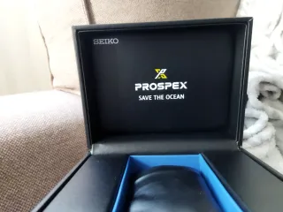 Caja original para guardar un reloj de la marca Seiko. Presenta un diseño elegante en color negro con detalles en azul. Vendo esta caja original Seiko "save the ocean". Está en buen estado con marcas de uso propias de haber cambiado de lugar. Las fotos forman parte de la descripción. - Color: Negro y azul. - Marca: Seiko.