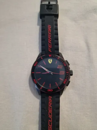 Reloj de la marca Ferrari con un diseño deportivo y llamativo.pila nueva.solo falta el cable de datos - Esfera negra con detalles en rojo. - Correa negra con detalles en rojo. - Bisel con marcadores en rojo.