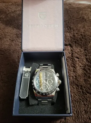 Reloj automático de la marca Pagani Design.9 - Diseño elegante El reloj de la imagen es un Pagani Design PD-1644, un cronógrafo deportivo Steeldive SD1989, Ploprof, The Grand, Monobloc, NH35, Sapphire, Lume, 1000m Diving, BNIB, ModernoSteeldive SD1989, Ploprof, The Grand, Monobloc, NH35, Sapphire, Lume, 1000m Diving, BNIB, Funciona con un movimiento de cuarzo meca-cuarzo Seiko VK63. La caja es de acero inoxidable 316L con un diámetro de 40 mm y un grosor de 12 mm. Tiene un cristal de zafiro plano con bisel de cerámica y resistencia al agua de 100 metros. El cronógrafo cuenta con una función de retorno