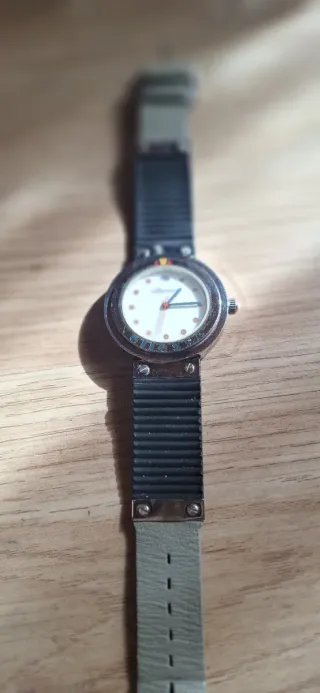 ESCUCHO OFERTAS Reloj Freestyle Night Vision de estilo diver con diseño bicolor acero y dorado. Caja robusta de acero inoxidable y brazalete metálico original. Esfera clara con índices luminiscentes y bisel con numeración tipo buceo. Resistente al agua 100 m según fabricante. Tamaño contenido, ideal para muñeca pequeña o mujer, aunque también puede usarse como reloj unisex. Funciona correctamente. Presenta ligeras marcas de uso normales en un reloj vintage, visibles en las fotos. Reloj con estética deportiva muy característica de los años 90. Si te gusta este artículo, tengo más relojes, Playmobil, zapatillas y material táctico