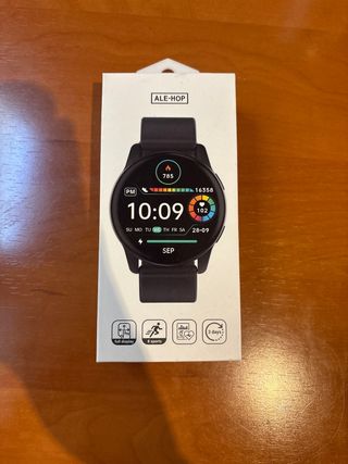 Reloj inteligente de la marca ALE-HOP en color negro. Un accesorio moderno y funcional. - Pantalla completa. - Incluye 8 modos deportivos. - Batería de larga duración (3 días).