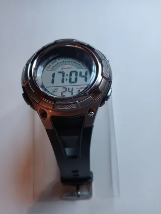 Reloj de pulsera digital Candino para hombre con un diseño moderno y elegante. - Marca Minerui con luz , alarma y cronómetro. - Pila recién cambiada, a penas puesto. - Esfera digital mide 4,50 cm. - Correa de goma negra. - Bisel plateado.