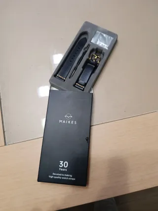 Correa de cuero negro para reloj de la marca MAIKES. Incluye hebilla dorada. - Material: Cuero - Color: Negro - Detalles: Hebilla dorada