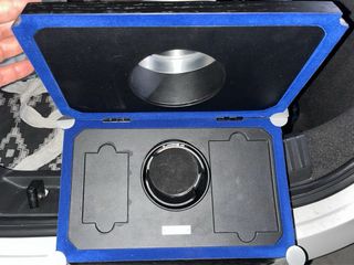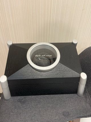 Elegante caja para relojes de la marca deLaCour. - Diseño moderno en color negro y detalles plateados. - Ventana circular superior para visualizar el interior.