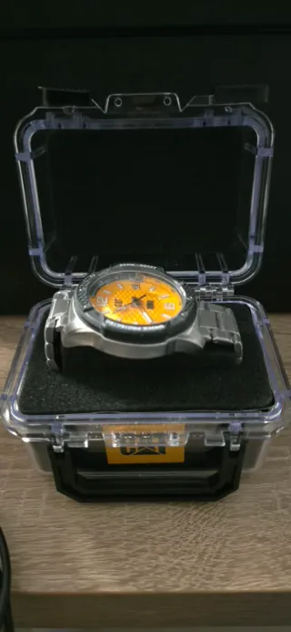 Reloj de la marca Caterpillar, modelo CAT, en color negro. Se entrega en su estuche original. Pertenece a la colección Shockmaster. - Estuche de plástico transparente con cierre de seguridad. - Logo de CAT en color naranja en el frontal del estuche.