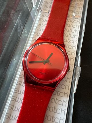 Modelo: SFR103 Reloj de la marca Swatch nuevo. De color rojo y Correa de goma con brillos. No se ha usado nunca y está tal cual se compró. Se vende por falta de uso.