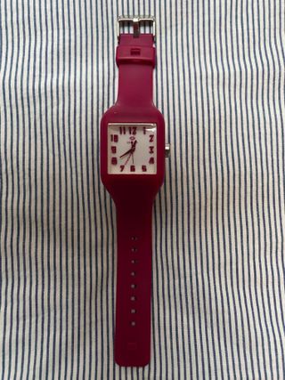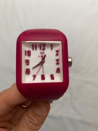 Reloj Marea original en color fucsia (el tono real es más vivo de lo que se aprecia en las fotos). Diseño moderno y muy cómodo, ideal para uso diario. 🔹 Marca: Marea 🔹 Movimiento: Analógico (cuarzo) 🔹 Color: Fucsia 🔹 Material de la correa: Silicona flexible 🔹 Cierre: Hebilla metálica 🔹 Estado: Buen estado general, con ligeras marcas de uso normales (ver fotos). 🔹 Funcionamiento: Funciona correctamente. Reloj ligero, práctico y con un color alegre que destaca, perfecto para el día a día o para regalar.