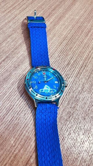 Reloj ruso recién comprado en Rusia, con factura. Auténtico Vostock amphybia de acero inoxidable sumergible 200 mts. Funciona con él movimiento. El reloj automático más económico y duro de la histórica marca Vostock. La correa azul no está incluida