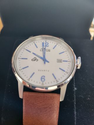 Reloj de caballero marca Lotus. Calendario en la esfera y correa de piel. Se entrega en su caja