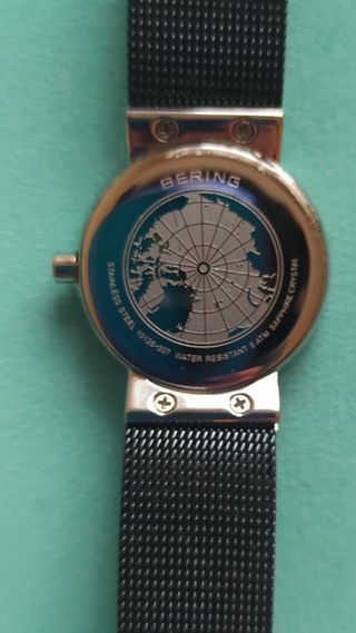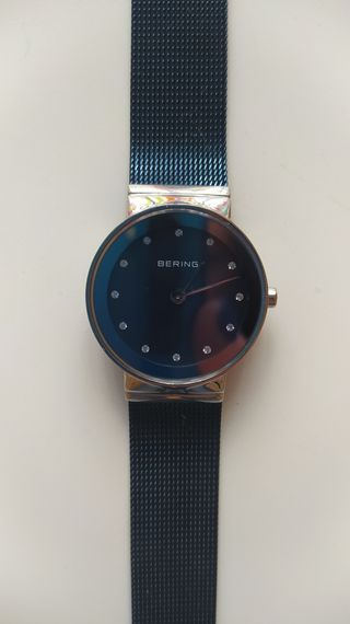Reloj marca Bering, de mujer. Color azul. Marca de relojes danesa de materiales de primera calidad fabricado con cristal de zafiro transparente resistente a los arañazos. Costó 189€
