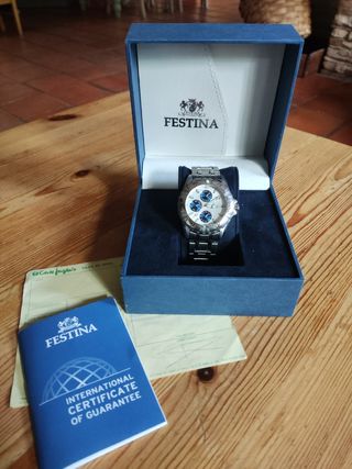 Reloj de la marca Festina. Adquirido en el corte inglés, con su garantía de autenticidad. Incluye caja y eslabones extra para ajustar al tamaño de la muñeca. Puesto en una ocasión y en perfecto estado. Se entrega en su caja original.