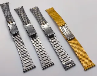 Dos de ellos son de la marca ZRC y están fabricados en acero años 70, tienen un largo aproximado de 16 centímetros y son para relojes de 16mm de asa. El otro es cromado años 70 y tiene una largo aproximado de 14 centímetros, medida asas de 18mm.