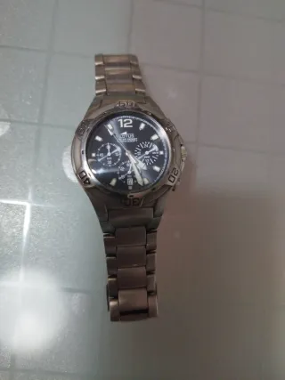 Elegante reloj Lotus con diseño deportivo y detalles en plata y negro. Perfecto para el día a día. Funciona cómo el primer día. - Esfera con múltiples subesferas. - Correa de metal. Acero. - Bisel con marcadores. - cristal mineral de 42 de diámetro. - modelo 15259. La esfera está perfecta,sin ninguna rayada ni marca, poco uso, vendo por tener demasiados relojes. Negociable.
