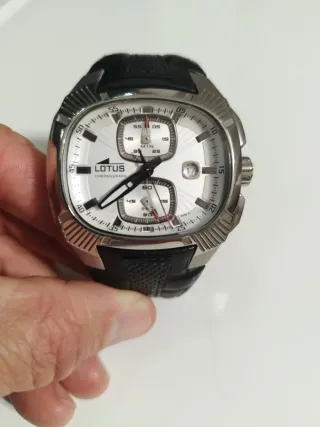 Reloj de pulsera Lotus con diseño deportivo y elegante. Funciona perfectamente. - Esfera plateada con detalles en negro. - Cristal mineral de alta resistencia. - Correa de cuero negra. - Función cronógrafo. La esfera está perfecta, sin marcas ni rayas, poco uso, vendo por tener demasiados relojes. En su dia costó 199€. Ahora está por unos 125€, aporto fotos.Negociable.