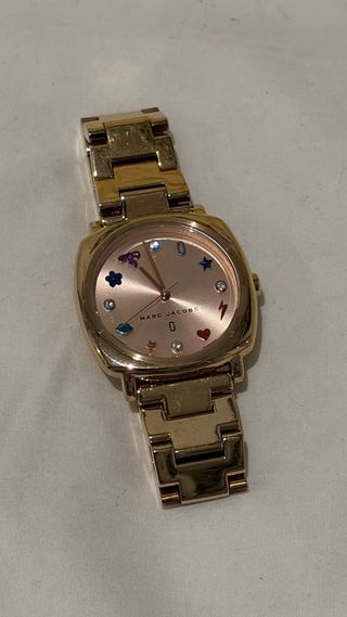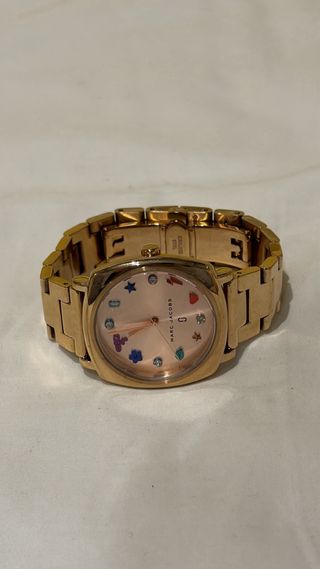 Reloj de pulsera con un diseño encantador y detalles coloridos. PRECIO NEGOCIABLE - Esfera con motivos divertidos y brillantes. - Brazalete metálico en tono dorado. - Cierre de seguridad. - Solo vendo en persona :) - Viene con cadenas a parte para hacerlo mas grande