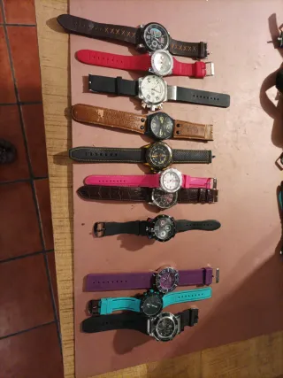 Lote de once relojes variados. Marca calgary casi todos, la mayoría están sin estrenar funcionan todos se vende el lote entero por treinta euros - Diseños diversos. - Correas de distintos materiales y colores.