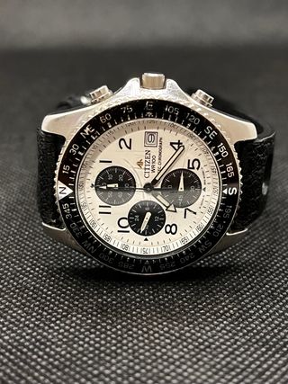 Precioso Citizen Pro-master Panda 40mm, descatalogado hace muchos años, difícil de encontrar en esta configuración de colores. Perfecto estado de marcha, todas sus funciones trabajan perfectamente y resetea a 0, cuarzo. Pila recién cambiada. Estéticamente está bien para sus años pero ha sido usado y tiene marcas, nada serio. LAS CORREAS DE PIEL DE LAS FOTOS NO ESTÁN INCLUIDAS, Solo reloj, sin caja ni documentación. Más relojes en mi perfil. Preferible entrega en mano para comprobar estado y autenticidad antes de la compra. Posibilidad de envío previo pago. Seiko.casio.rolex.omega.tudor.breitling.longines.oris.timex.