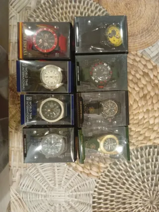 Elegantes relojes, para coleccionistas, o alguien que los vaya a usar, y le gusten, no se han abierto de la caja, ni usados, no funcionan por lo que veo, pero tampoco han sido usados. No sé de relojes, ni de marcas, ní de nada de ellos, así que no me pregunten. No pongo precio lo hablamos por privado. Compralos.