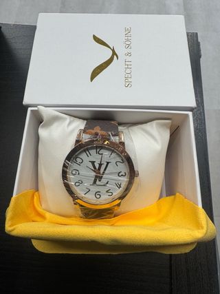 Elegante reloj de la marca SPECHT & SÖHNE. - Diseño con correa en tonos marrones. - Detalles en color dorado en la caja y la esfera.