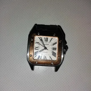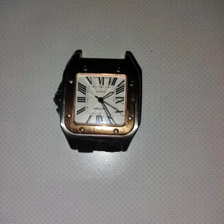 Reloj Cartier Santos 100 con detalles en oro 18 kilates y plata. - Esfera blanca con números romanos. Escucho ofertas