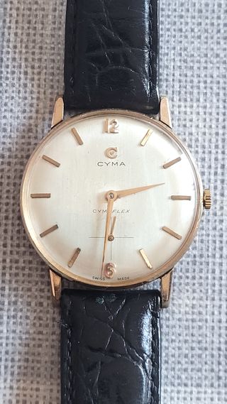 Reloj Cyma Cymaflex, automatico, recién revisado por relojero profesional, bañado en oro, esta muy buen estado, reloj para toda la vida, fabricado en Suiza, correa de piel de lagarto legitima.