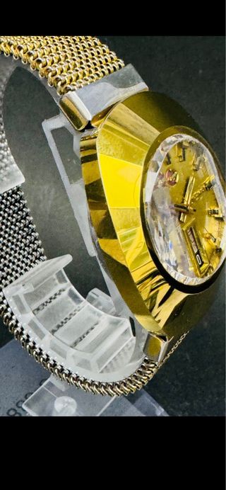 Elegante reloj Rado con un diseño sofisticado. - Combinación de colores oro y plata. - Brazalete de malla metálica. MARCA Rado GÉNERO Hombre MODELO Diastar MATERIAL DE LA CORREA DEL RELOJ Acero SE ENVÍA ASEGURADO Sí LONGITUD DE LA CORREA DEL RELOJ Normal (180-200 mm) PERIODO 1990-1999 ESFERA REPINTADA No MOVIMIENTO Automático COLOR DE LA ESFERA Dorado MATERIAL DE LA CAJA Acero, Bañado en oro