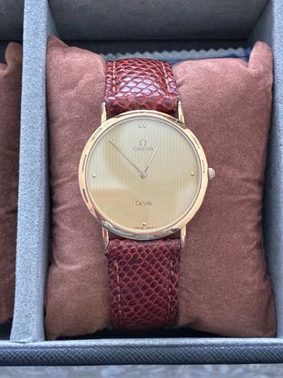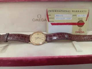 Atiendo solo WhatsApp Elegante reloj Omega con caja y detalles en oro. La correa es de piel marrón. - Esfera clara con marcadores dorados. - Correa de piel con textura. - Diseño clásico y atemporal.de 18ki , manual funciona muy bien , lo entrego en mano Precio 2500e. Acepto ofertas serias . Atiendo Solo WHATSAPP 637803161