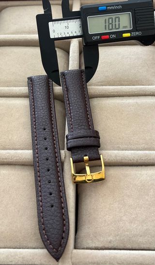 Correa de reloj de piel de becerro con un acabado texturizado y costuras reforzadas. - Material: Piel de becerro - Medidas : 18mm - Cierre: Hebilla. De acero oro - Entrego o envío con pasadores