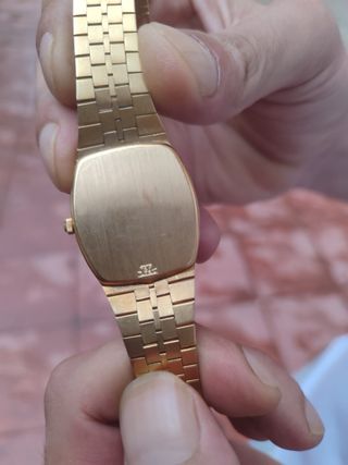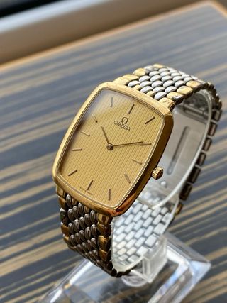 INFO PRIVADO! MAS FOTOS Y VIDEO DISPONIBLE SI ESTAS INTERESADO/A CONTACTAME Y TE LO MANDO A TÚ WHATSAPP. VENTA PRESENCIAL PARA VERIFICAR RELOJ ,ORO , Y DINERO GRACIAS!! Elegante reloj Omega de estilo vintage con una distintiva caja rectangular y brazalete a juego. - Peso en ORO 55gr. - Años 70s. - 28mm. - Ideal coleccionismo. - Nuevo. - Full Set. - Esfera dorada. - Indicador de fecha. - Movimiento de cuarzo.