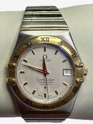 Reloj Omega Constellation en oro de 18 quilates y acero. - Bisel con números romanos. - Correa de eslabones combinando oro y acero. - Ventana de fecha en la esfera. El calibre está cambiado por el otro de longines que es el mismo que el de omega solo cambia el nombre,el reloj funciona perfectamente