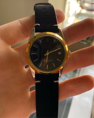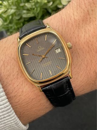 Omega Seamaster Quartz Vintage – 33 mm – Vintage Elegante reloj vintage de la icónica colección Seamaster de Omega, una de las líneas más reconocidas de la prestigiosa firma suiza. Equipa movimiento de cuarzo Omega, preciso y fiable. Caja de 33 mm chapada en oro. Esfera gris texturizada original, muy elegante y poco común, ventana de fecha a las 3h. Cristal en buen estado general, con ligeras marcas normales de uso. Correa de piel negra estilo cocodrilo. Caja en buen estado con leves señales de uso acordes a su antigüedad. Reloj funcionando perfectamente. Se vende sin caja ni papeles. Envío rápido y seguro.