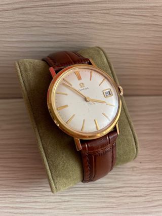 Omega automático con caja de oro 18 k. Limpiado y engrasado. Va perfecto. De 1965. Calibre automático 552. Correa de lagarto y hebilla omega (no de oro) y estuche original omega. Diámetro 34 mm sin corona. 36 con ella. Asas de 18 mm. Preferible venta en mano para verlo en directo. #Zenith #Rolex #Panerai #Tudor #Hublot #Patek #Omega #Cartier