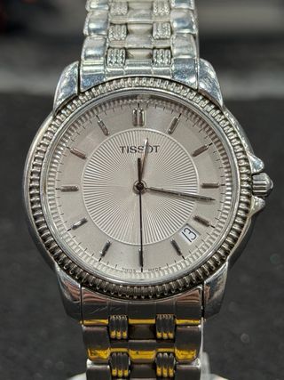 Elegante reloj Tissot con mecanismo de cuarzo y cristal de zafiro. Funciona pero se le acabaron las pilas que habría que cambiarle.