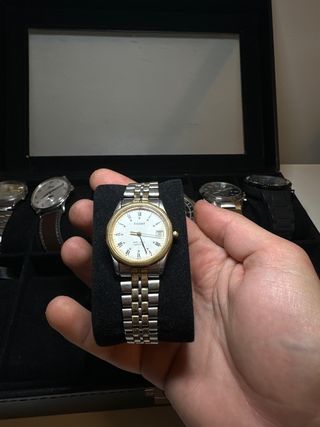 Vendo este Mathey-Tissot Diver en perfecto estado, prácticamente nuevo, usado solo para probarlo. Es un modelo difícil de encontrar, muy llamativo y con presencia. ✨ Características: • Swiss Made • Movimiento suizo de alta precisión • Caja bicolor acero/oro • Esfera azul con lupa de fecha • Bisel giratorio bicolor • Correa sólida de acero con eslabones bicolor • Diseño exclusivo tipo diver cuadrado • Cristal resistente a arañazos • 50 m / 164 ft de resistencia al agua ✔️ Estado: Impecable, sin golpes, sin arañazos profundos. Funciona perfecto, como recién salido de tienda. 🎁 Se entrega con: • Su caja original