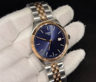 Reloj Tissot Gentleman con movimiento Powermatic 80 Silicium. - Esfera azul. - Bisel y detalles en oro de 18 quilates. - Correa de piel - Como nuevo full set - 40 mm de diametro
