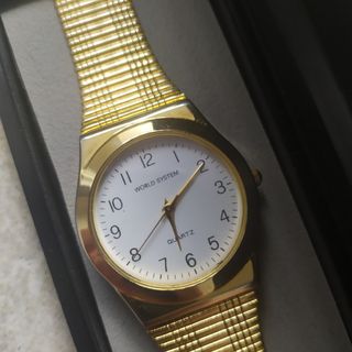 Precio NO negociable. Reloj de acero inoxidable chapado en oro de World System. UNISEX. Medidas (ver fotos): largo máximo correa 22 cm y diámetro esfera 3 cm aproximadamente. La correa es regulable en largo. Incluye caja. No incluye pila. SIN ESTRENAR, ver fotos para el estado. Muchos productos en mi perfil a 1€. ¡¡¡Aprovéchate de que estoy haciendo limpieza de joyero y armario!!! Productos en perfecto estado y algunos incluso con etiqueta. AHORRA EN EL ENVÍO: si te interesan varias cosas las pongo como un solo producto para que solo sean unos gastos de envío. SOLO hago envíos por Wallapop. Entrega en mano en Fábrica de Harinas.