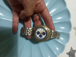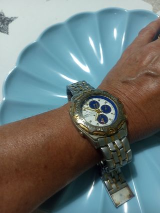 Reloj automático Breitling en buen estado. - Esfera con detalles en oro y plata. - Correa de metal. - Bisel giratorio. ¿el reloj es automático. y anda perfectamente lo único que le falta. es una aguja de la esfera pequeñita. que no afecta a tu funcionamiento