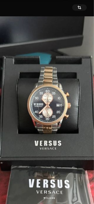 Reloj Sumergible!! Elegante reloj Versus Versace con un diseño bicolor que combina tonos dorados y plateados. Un accesorio llamativo y sofisticado. - Esfera azul con detalles en oro rosa. - Correa de acero inoxidable en dos tonos.