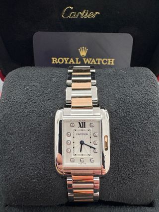 Royal Watch Marbella vende estupendo Cartier Tank Anglaise ref. 3485 oro rosa y acero en excelente estado, esfera con diamantes, año 2023, full set con su caja y su documentacion. Se vende revisado todavia en garantia oficial Cartier Tenemos tienda en Marbella royal_watch_marbella_rolex