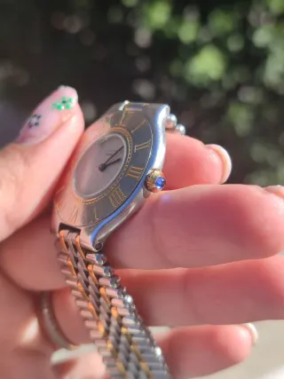 Reloj Cartier Must de Cartier 21 para señora, original, un icono de la marca. Diseño elegante y atemporal, perfecto tanto para uso diario como para ocasiones especiales. 🔹 Marca: Cartier 🔹 Modelo: Must de Cartier 21 🔹 Movimiento: Cuarzo 🔹 Caja: Acero inoxidable 🔹 Bisel: Con números romanos 🔹 Brazalete: Acero y oro original Cartier 🔹 Tamaño caja: aprox. 26–28 mm 🔹 Estado: Buen estado general, con señales normales de uso acordes a su edad (ver fotos) Reloj muy cómodo en muñeca y con gran presencia. Ideal para quien busca un Cartier auténtico a un precio más accesible que modelos actuales. 📦 Se entrega tal cual se muestra e