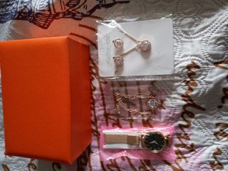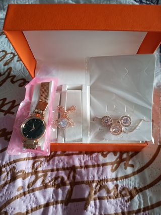 reloj, pulsera,colgante y aretes.color oro rosa Nuevo a estrenar