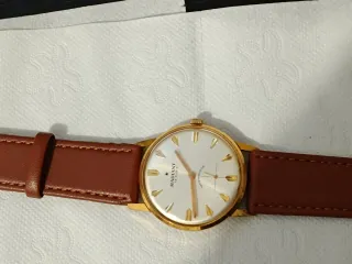 Elegante reloj Radiant con detalles en oro de 10 micras. Y 15 rubis Un clásico atemporal. - Esfera de color blanco. - Correa de cuero marrón. - Movimiento antimagnético. Muy guapo muy limpio en excelentes condiciones