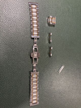 Elegante reloj de la marca Jaguar con un diseño bicolor que combina oro y plata. Presentado en su caja original. - Bisel giratorio. - Correa de eslabones. - Cierre desplegable.