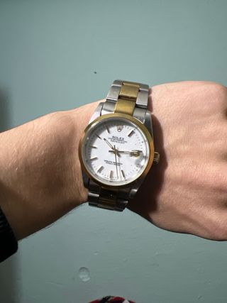 Reloj Rolex Oyster Perpetual Datejust con combinación de oro y acero. - Bisel de oro. - Brazalete de eslabones mixtos (oro y acero). - Esfera blanca con índices. - Urge venta -abtenerse ofertas absurdas