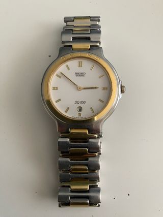 Vendo este reloj Seiko de cuarzo en perfecto estado estético, ideal tanto para uso diario como para ocasiones especiales. Su diseño elegante combina tonos dorados y plateados en la correa metálica, aportando un estilo sofisticado y versátil. 🔹 Marca: Seiko 🔹 Movimiento: Quartz 🔹 Correa: Acero inoxidable bicolor (oro/plata) 🔹 Esfera: Blanca minimalista con marcadores dorados 🔹 Número de serie: 7N00-7A70 🔹 Incluye: Caja original (ideal para regalo) 📦 Envío disponible o entrega en mano. 💬 ¡No dudes en escribirme si quieres más fotos o tienes preguntas!